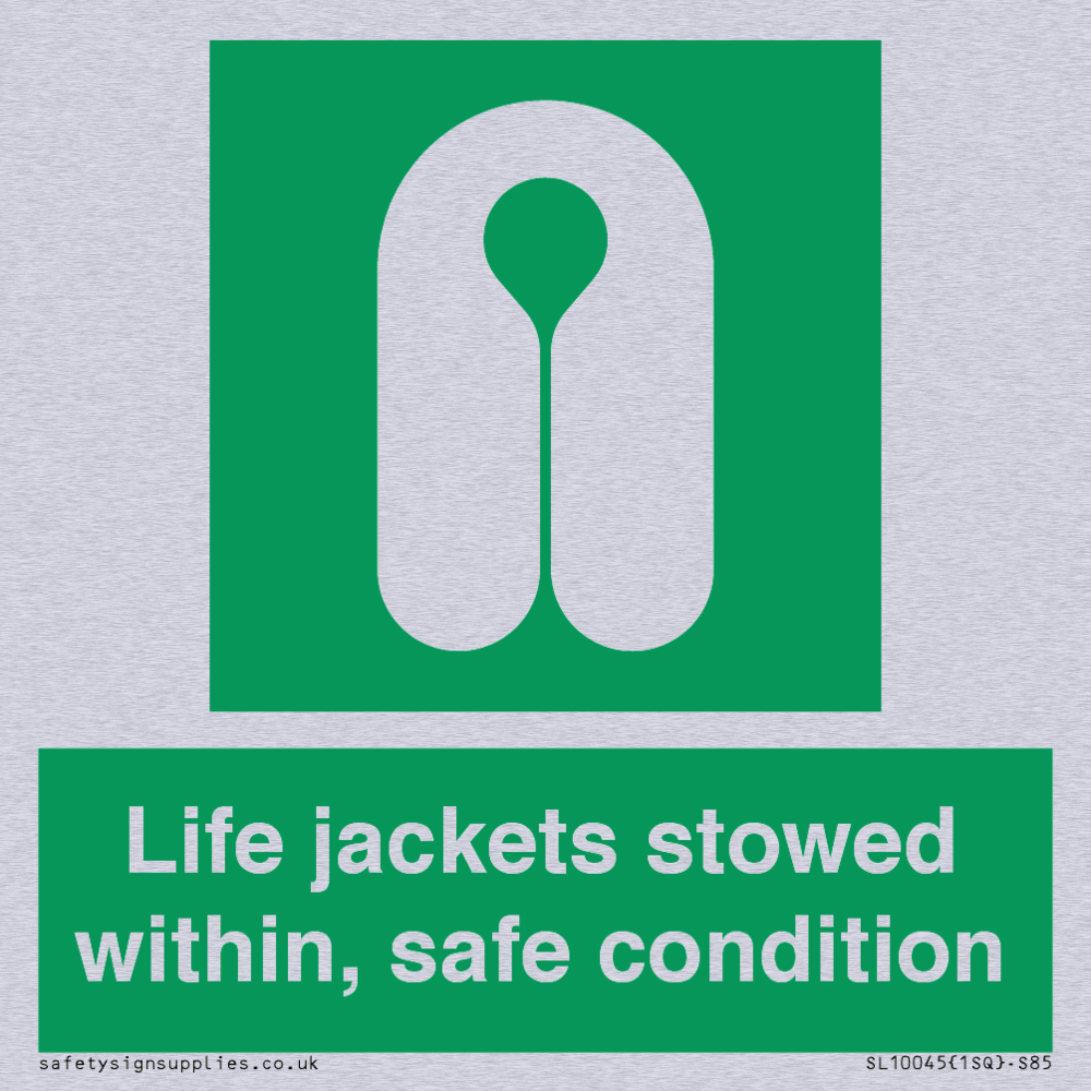 Sign Text: Life jackets stowed within