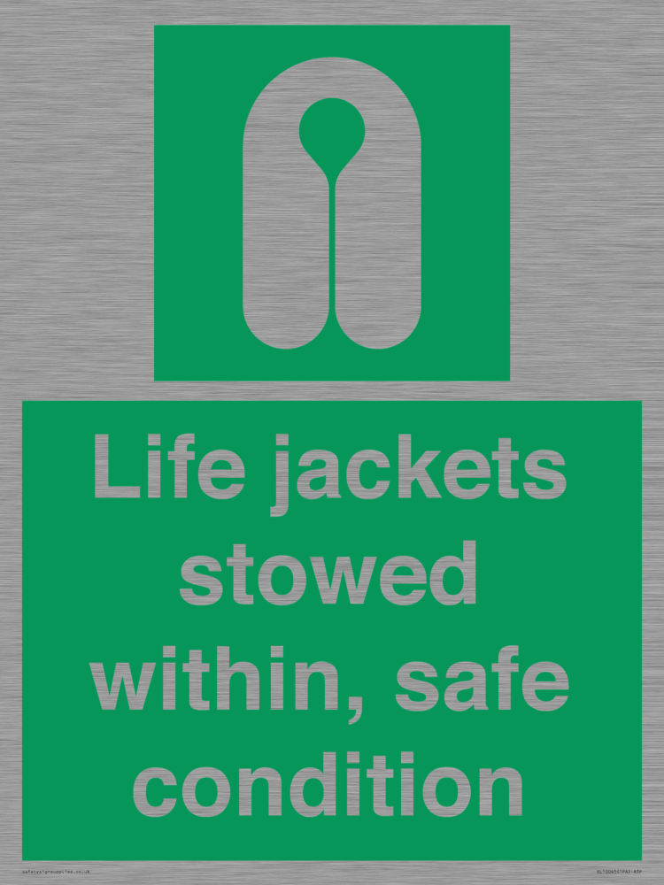 Sign Text: Life jackets stowed within