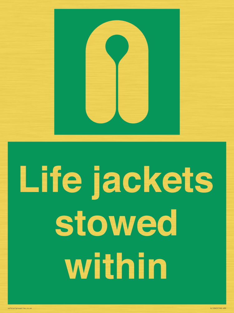 Sign Text: Life jackets stowed within