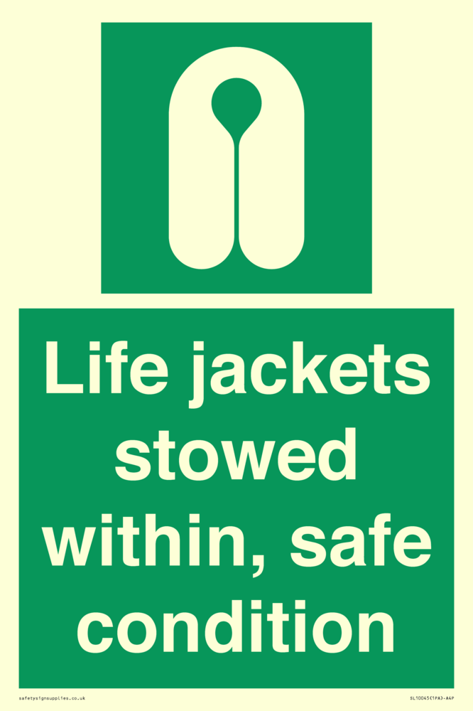 Sign Text: Life jackets stowed within