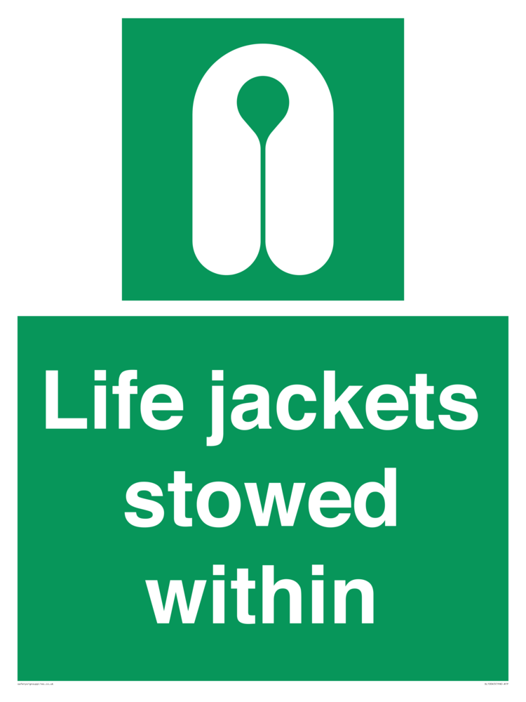 Sign Text: Life jackets stowed within