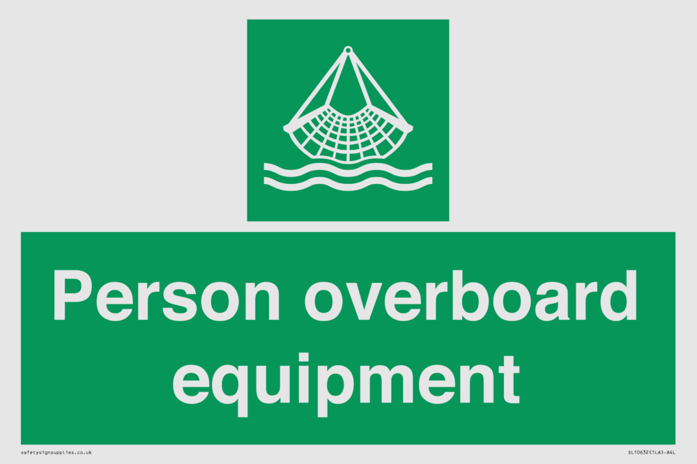 E928 Safe condition: Person overboard equipment symbol. To indicate the location of person overboard / man overboard equipment. Commonly known as a Jasons Cradle.