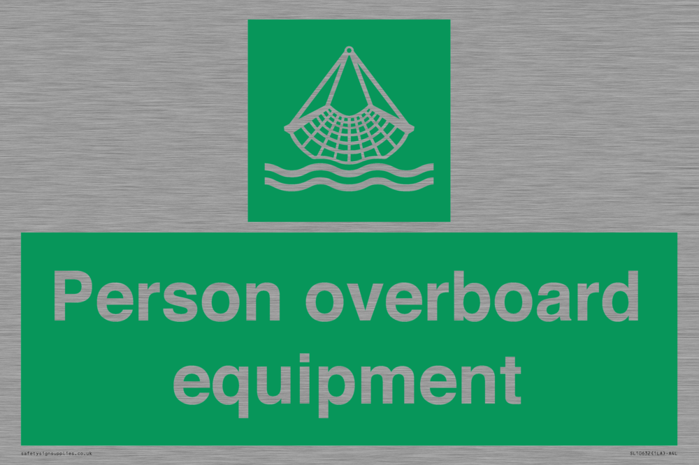 E928 Safe condition: Person overboard equipment symbol. To indicate the location of person overboard / man overboard equipment. Commonly known as a Jasons Cradle.