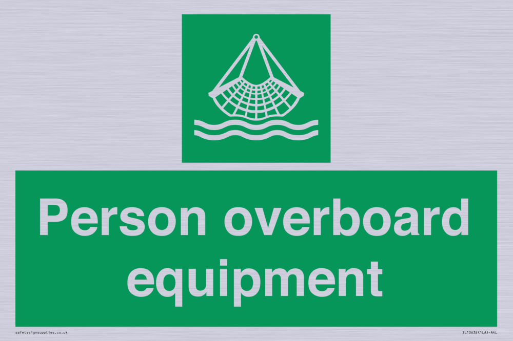 E928 Safe condition: Person overboard equipment symbol. To indicate the location of person overboard / man overboard equipment. Commonly known as a Jasons Cradle.