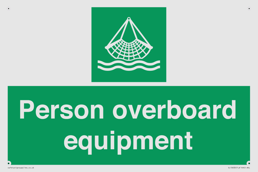 E928 Safe condition: Person overboard equipment symbol. To indicate the location of person overboard / man overboard equipment. Commonly known as a Jasons Cradle.