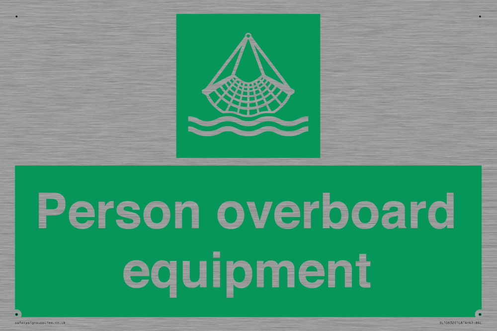 E928 Safe condition: Person overboard equipment symbol. To indicate the location of person overboard / man overboard equipment. Commonly known as a Jasons Cradle.