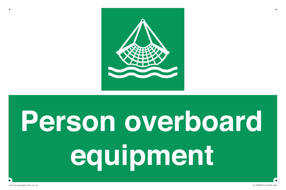 E928 Safe condition: Person overboard equipment symbol. To indicate the location of person overboard / man overboard equipment. Commonly known as a Jasons Cradle.