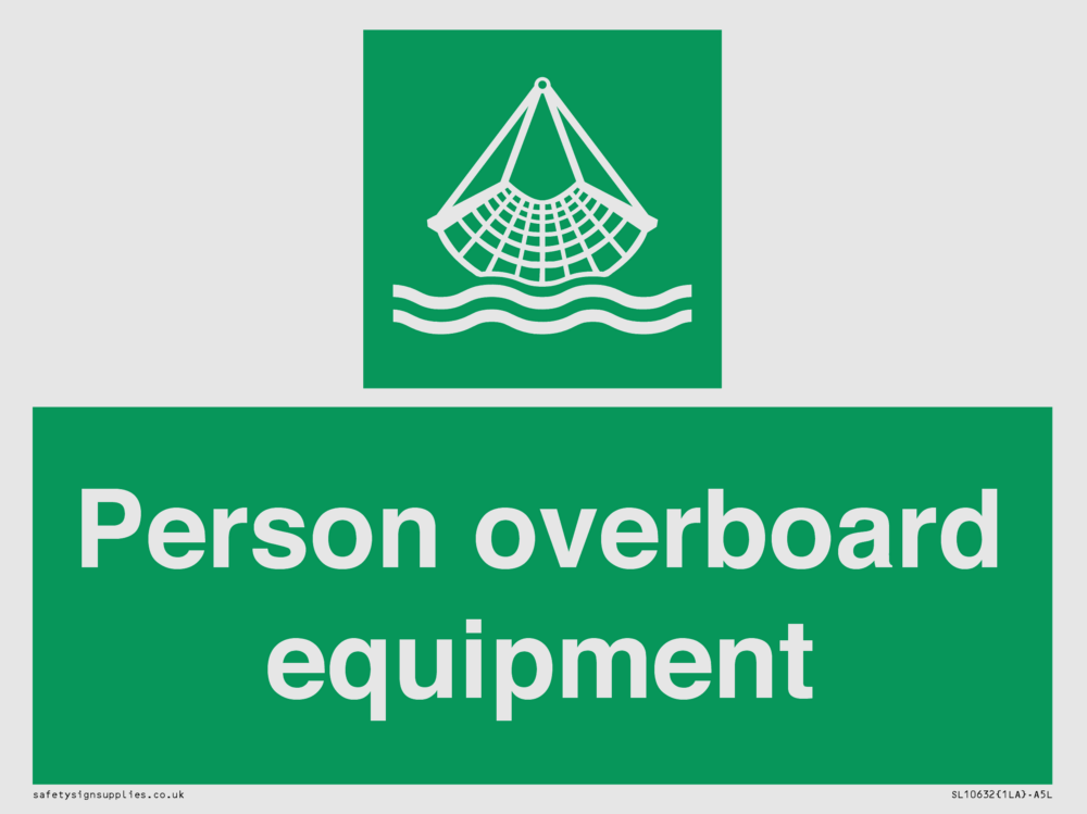 E928 Safe condition: Person overboard equipment symbol. To indicate the location of person overboard / man overboard equipment. Commonly known as a Jasons Cradle.