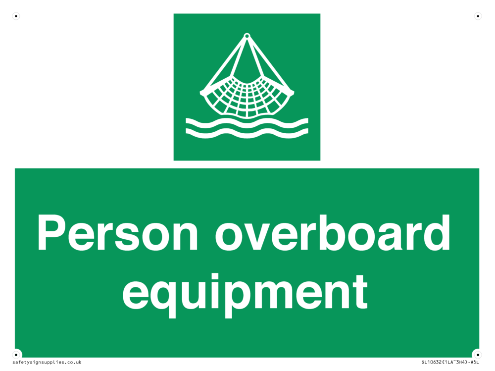 E928 Safe condition: Person overboard equipment symbol. To indicate the location of person overboard / man overboard equipment. Commonly known as a Jasons Cradle.