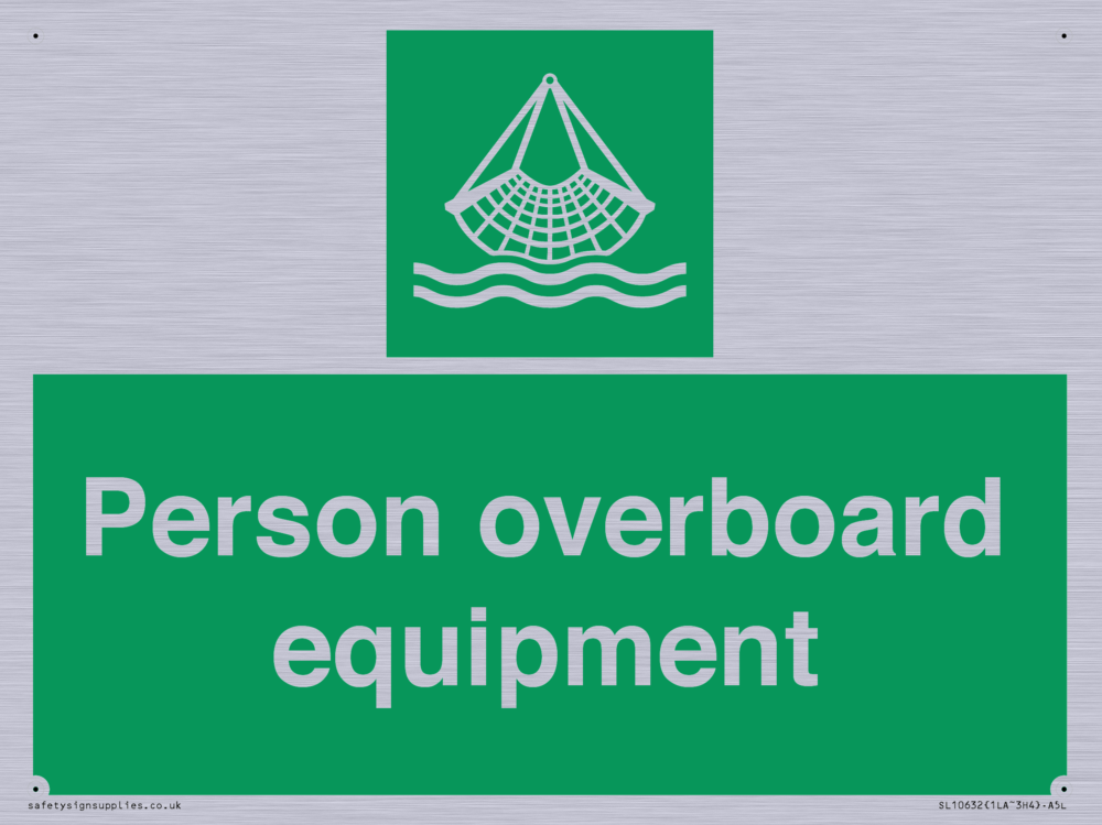 E928 Safe condition: Person overboard equipment symbol. To indicate the location of person overboard / man overboard equipment. Commonly known as a Jasons Cradle.