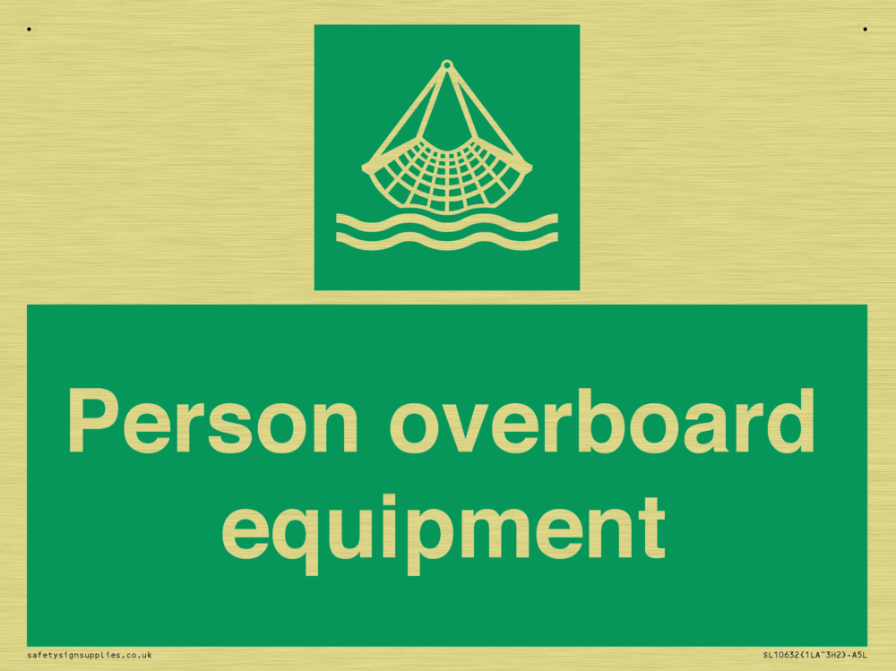 E928 Safe condition: Person overboard equipment symbol. To indicate the location of person overboard / man overboard equipment. Commonly known as a Jasons Cradle.
