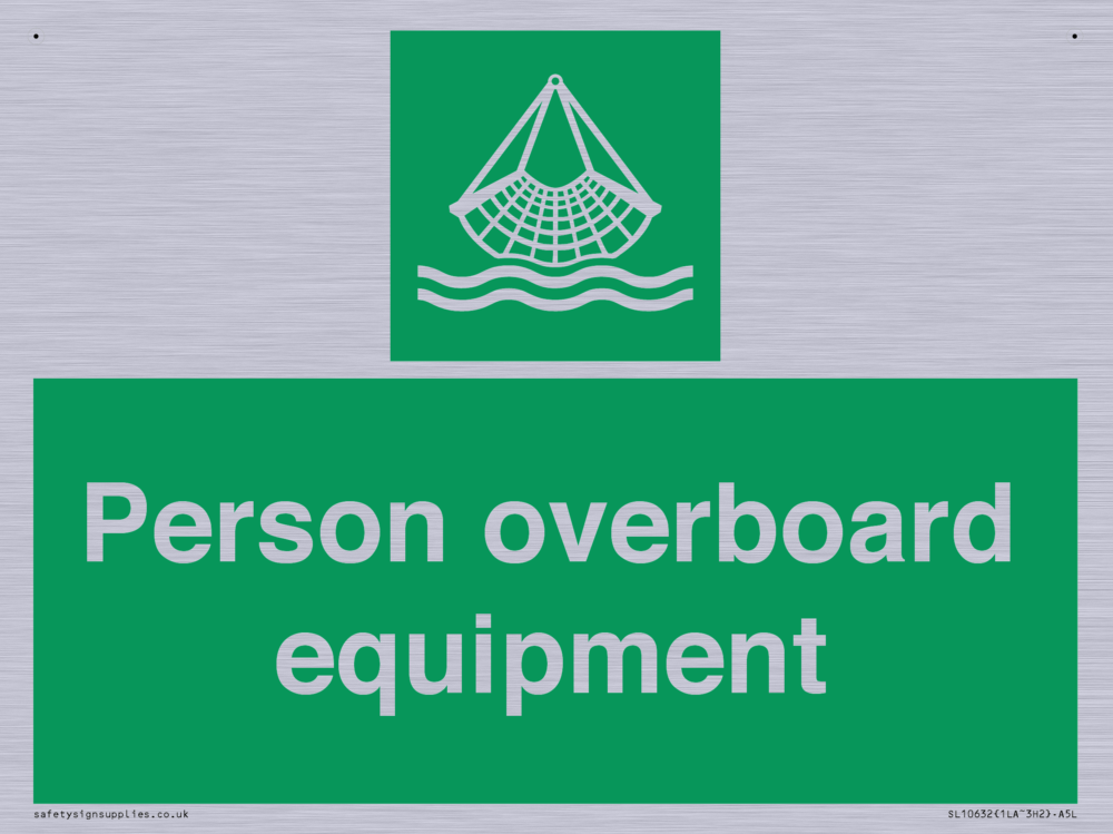 E928 Safe condition: Person overboard equipment symbol. To indicate the location of person overboard / man overboard equipment. Commonly known as a Jasons Cradle.