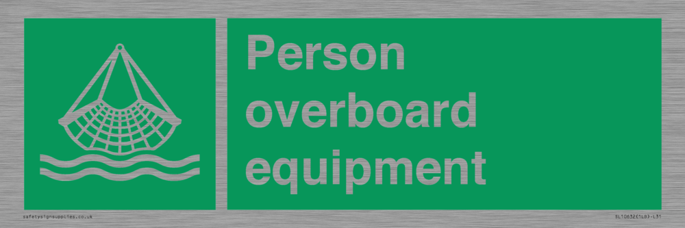 E928 Safe condition: Person overboard equipment symbol. To indicate the location of person overboard / man overboard equipment. Commonly known as a Jasons Cradle.