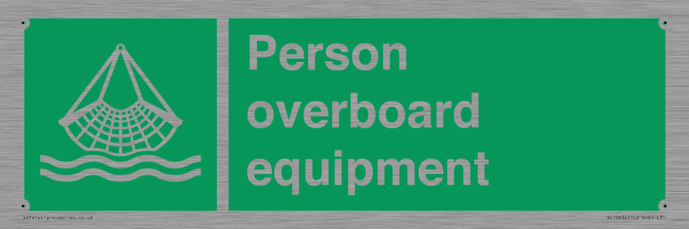 E928 Safe condition: Person overboard equipment symbol. To indicate the location of person overboard / man overboard equipment. Commonly known as a Jasons Cradle.