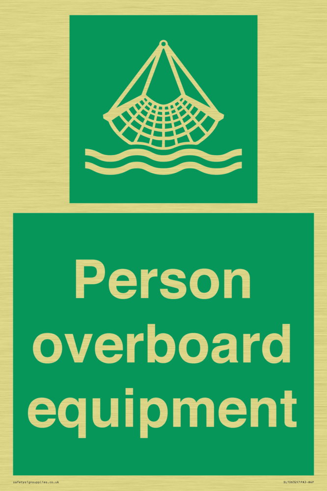 E928 Safe condition: Person overboard equipment symbol. To indicate the location of person overboard / man overboard equipment. Commonly known as a Jasons Cradle.