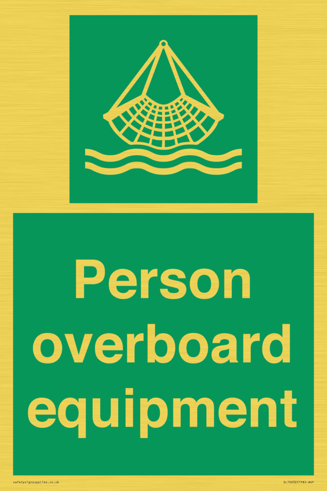 E928 Safe condition: Person overboard equipment symbol. To indicate the location of person overboard / man overboard equipment. Commonly known as a Jasons Cradle.