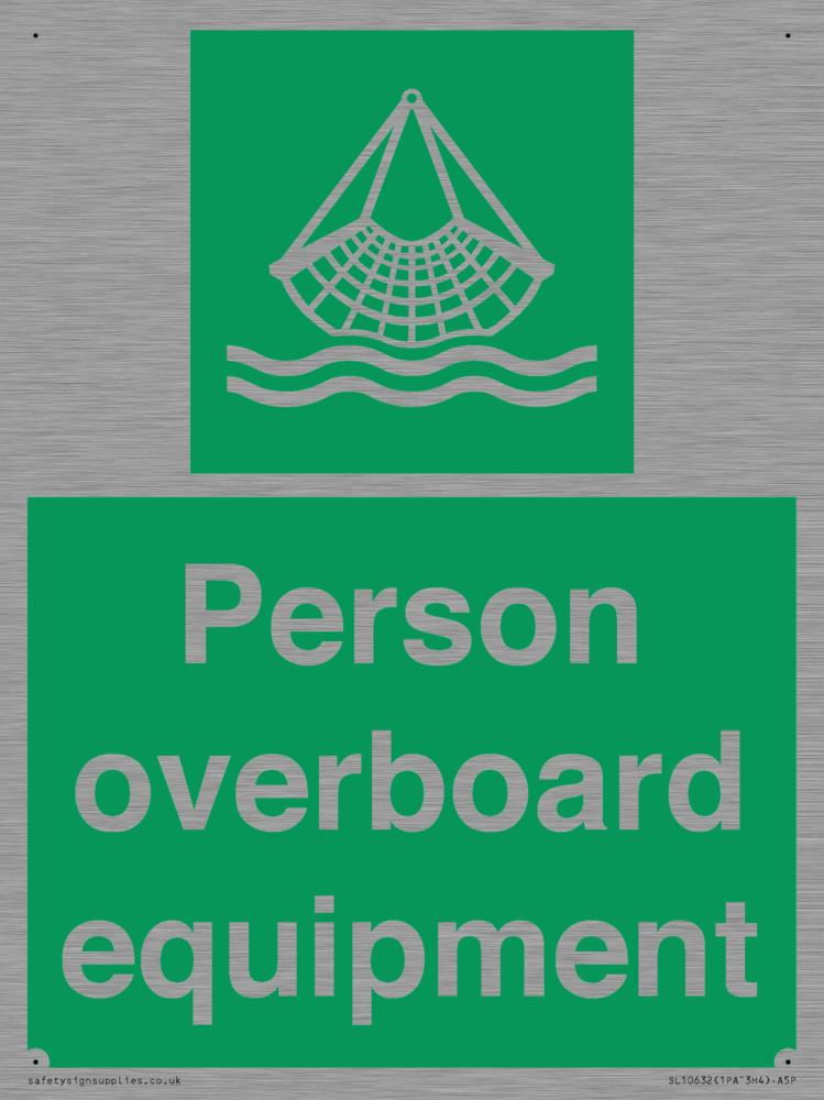 E928 Safe condition: Person overboard equipment symbol. To indicate the location of person overboard / man overboard equipment. Commonly known as a Jasons Cradle.