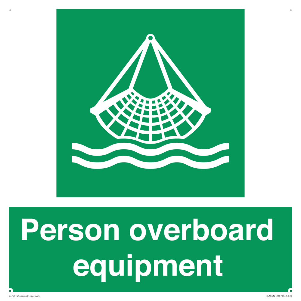 E928 Safe condition: Person overboard equipment symbol. To indicate the location of person overboard / man overboard equipment. Commonly known as a Jasons Cradle.