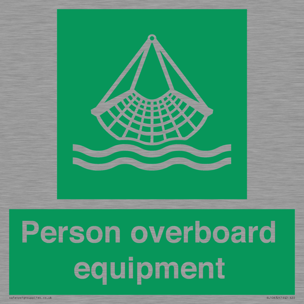 E928 Safe condition: Person overboard equipment symbol. To indicate the location of person overboard / man overboard equipment. Commonly known as a Jasons Cradle.