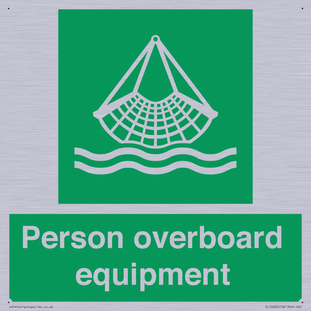 E928 Safe condition: Person overboard equipment symbol. To indicate the location of person overboard / man overboard equipment. Commonly known as a Jasons Cradle.