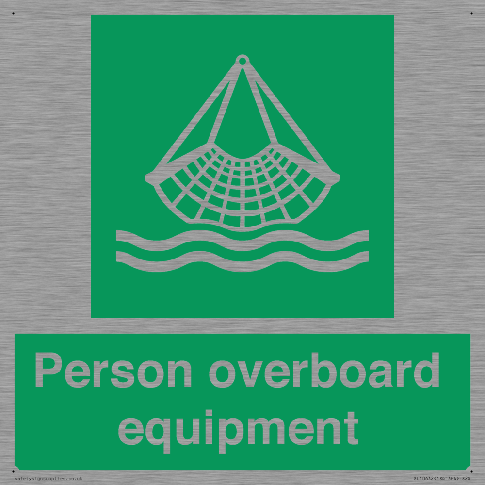 E928 Safe condition: Person overboard equipment symbol. To indicate the location of person overboard / man overboard equipment. Commonly known as a Jasons Cradle.