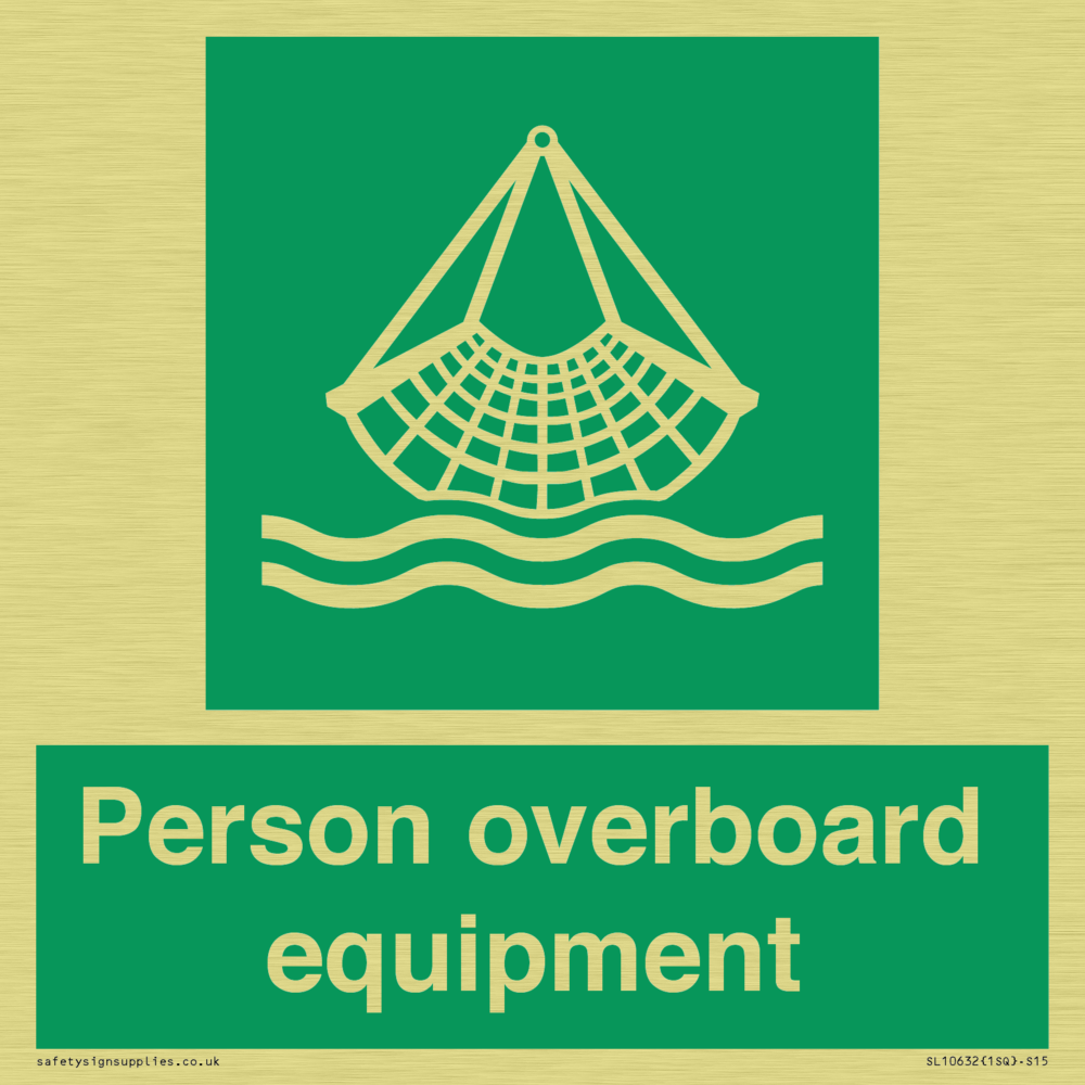 E928 Safe condition: Person overboard equipment symbol. To indicate the location of person overboard / man overboard equipment. Commonly known as a Jasons Cradle.