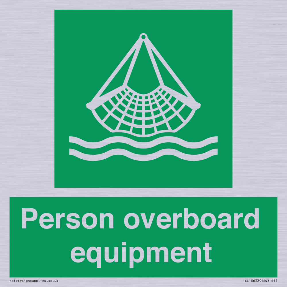 E928 Safe condition: Person overboard equipment symbol. To indicate the location of person overboard / man overboard equipment. Commonly known as a Jasons Cradle.