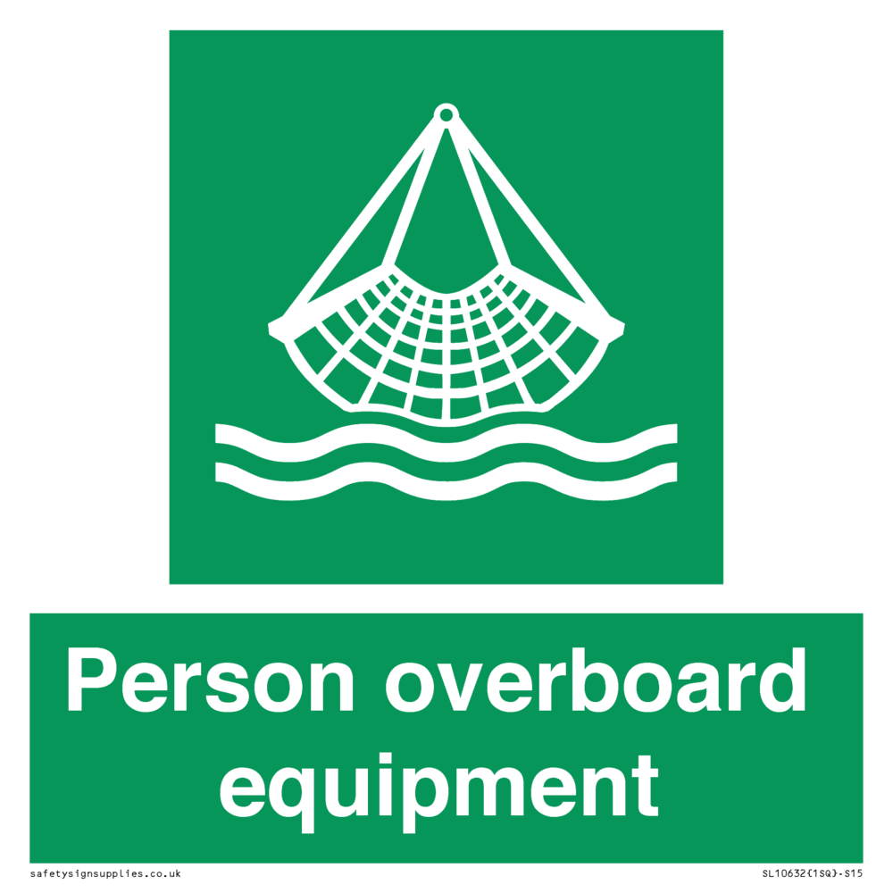 E928 Safe condition: Person overboard equipment symbol. To indicate the location of person overboard / man overboard equipment. Commonly known as a Jasons Cradle.