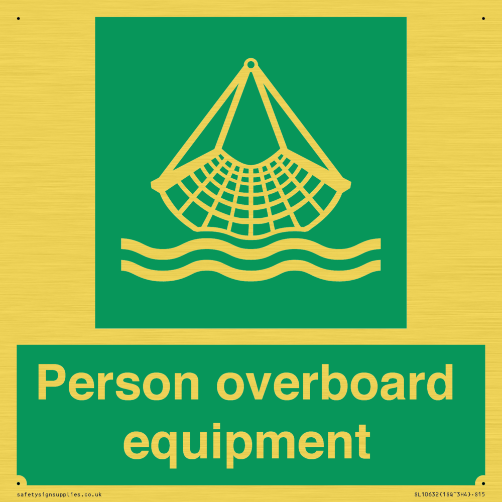 E928 Safe condition: Person overboard equipment symbol. To indicate the location of person overboard / man overboard equipment. Commonly known as a Jasons Cradle.