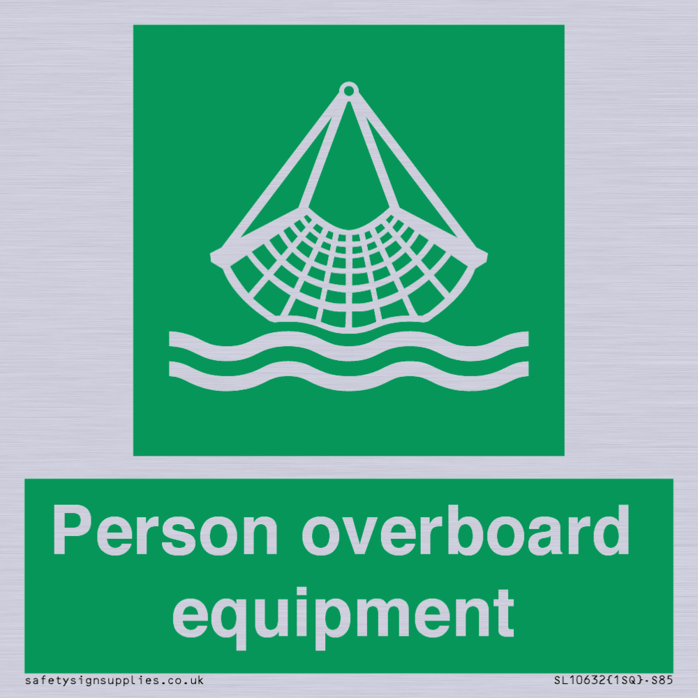 E928 Safe condition: Person overboard equipment symbol. To indicate the location of person overboard / man overboard equipment. Commonly known as a Jasons Cradle.