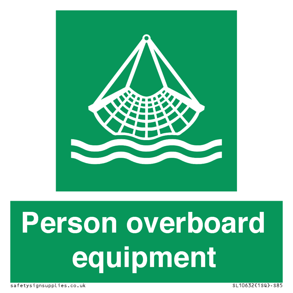 E928 Safe condition: Person overboard equipment symbol. To indicate the location of person overboard / man overboard equipment. Commonly known as a Jasons Cradle.
