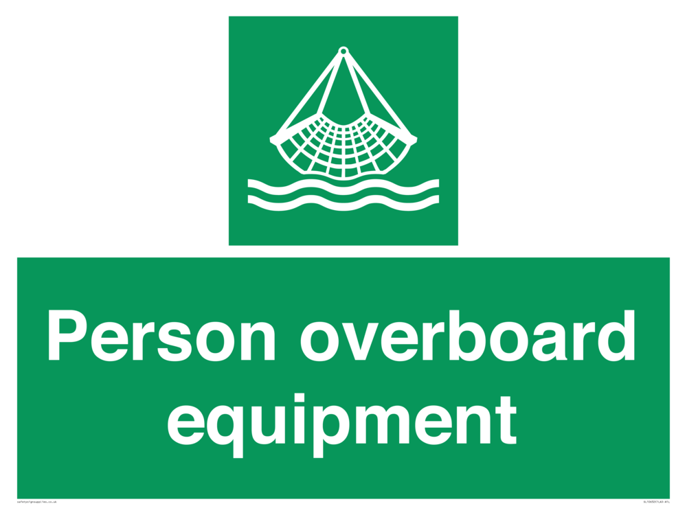 E928 Safe condition: Person overboard equipment symbol. To indicate the location of person overboard / man overboard equipment. Commonly known as a Jasons Cradle.
