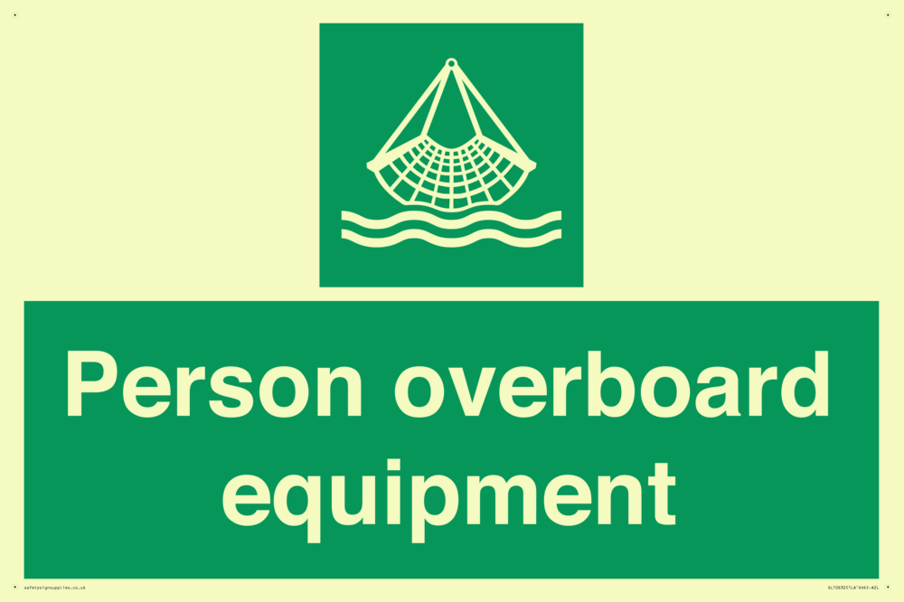 E928 Safe condition: Person overboard equipment symbol. To indicate the location of person overboard / man overboard equipment. Commonly known as a Jasons Cradle.
