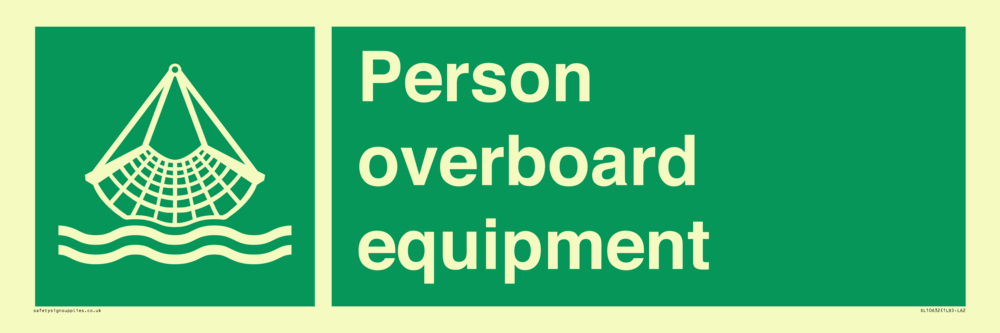 E928 Safe condition: Person overboard equipment symbol. To indicate the location of person overboard / man overboard equipment. Commonly known as a Jasons Cradle.