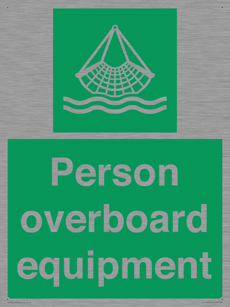 E928 Safe condition: Person overboard equipment symbol. To indicate the location of person overboard / man overboard equipment. Commonly known as a Jasons Cradle.