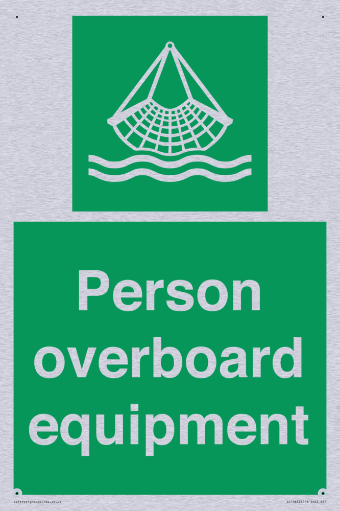 E928 Safe condition: Person overboard equipment symbol. To indicate the location of person overboard / man overboard equipment. Commonly known as a Jasons Cradle.