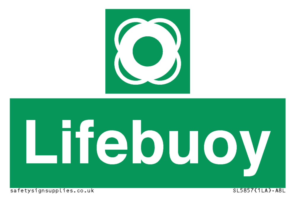 Sign Text: Lifebuoy Dimensions: 75x50mm Material: Plastic Rigid 3mm Orientation: Landscape Text Colour: White Background Colour: Green More...