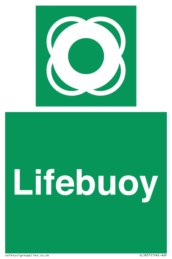 Sign Text: Lifebuoy Dimensions: 100x150mm Material: Aluminium Composite 3mm Orientation: Portrait Text Colour: White Background Colour: Green More...