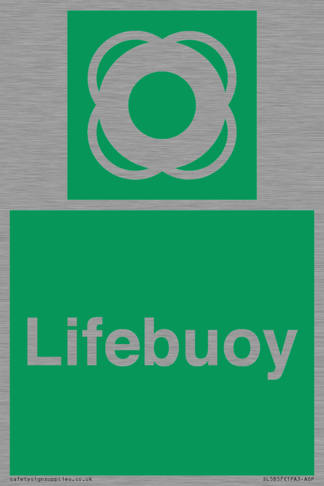 Sign Text: Lifebuoy Dimensions: 100x150mm Material: Stainless Steel Orientation: Portrait Text Colour: White Background Colour: Green More...