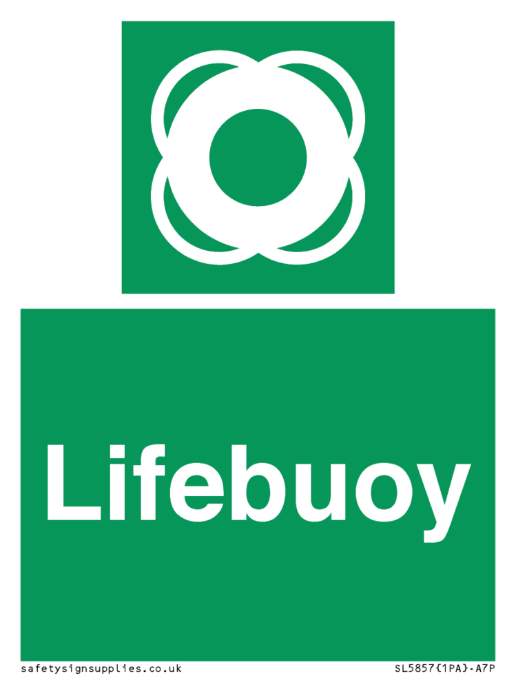 Sign Text: Lifebuoy Dimensions: 75x100mm Material: Plastic Semi-rigid 1mm Orientation: Portrait Text Colour: White Background Colour: Green More...