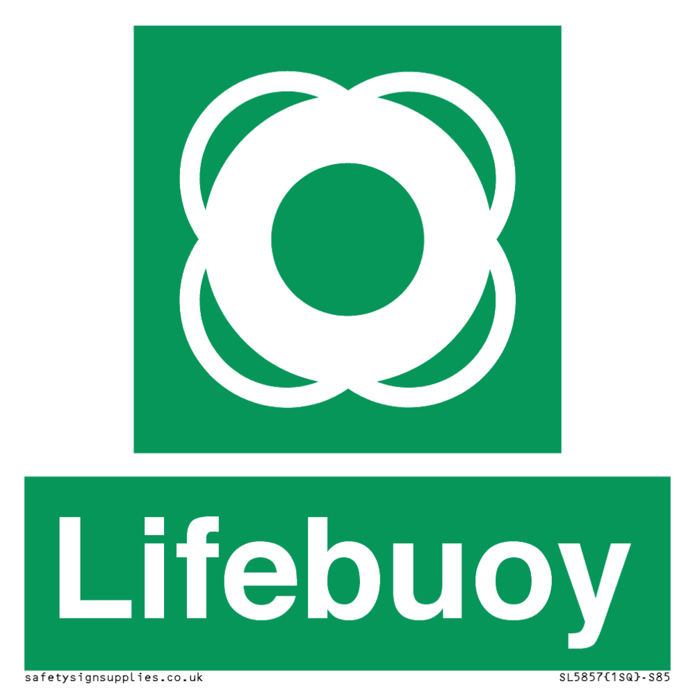 Sign Text: Lifebuoy Dimensions: 85x85mm Material: Plastic semi rigid 1mm self adhesive Orientation: Square Text Colour: White Background Colour: Green More...