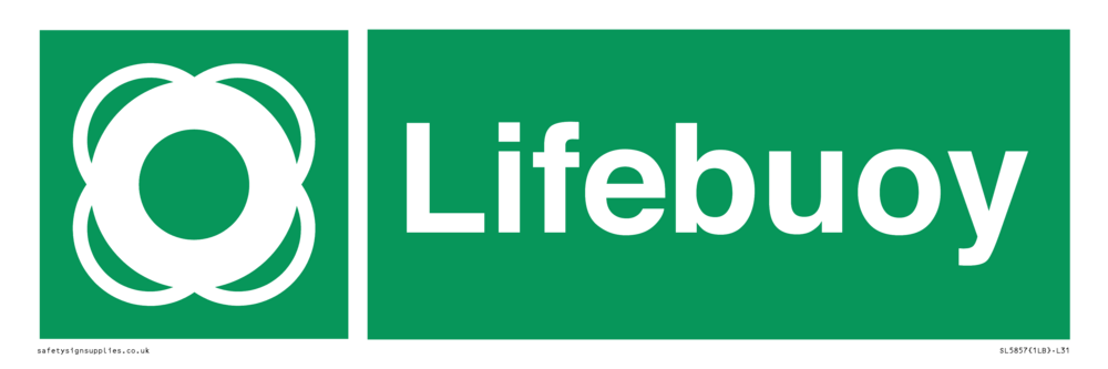 Sign Text: Lifebuoy Dimensions: 300x100mm Material: Plastic Rigid 3mm Text Colour: White Background Colour: Green Recommended Fixings: Budget Hanging Kit More...