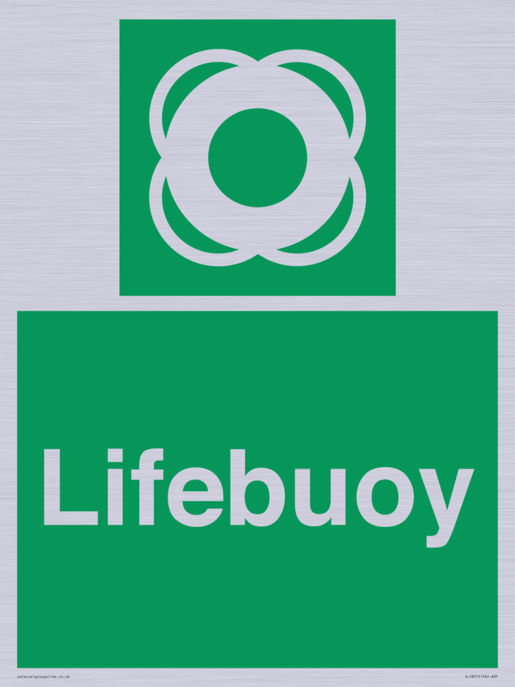 Sign Text: Lifebuoy Dimensions: 300x400mm Material: Plastic Semi-rigid Silver Orientation: Portrait Text Colour: White Background Colour: Green More...