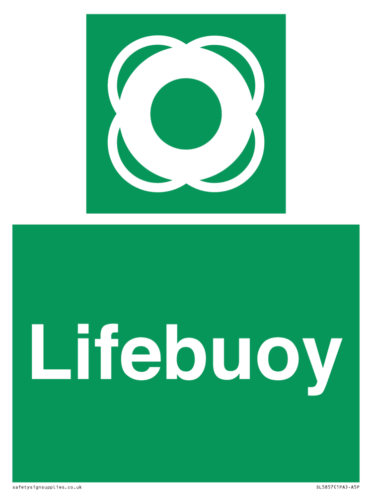 Sign Text: Lifebuoy Dimensions: 150x200mm Material: Plastic Semi-rigid 1mm Orientation: Portrait Text Colour: White Background Colour: Green More...