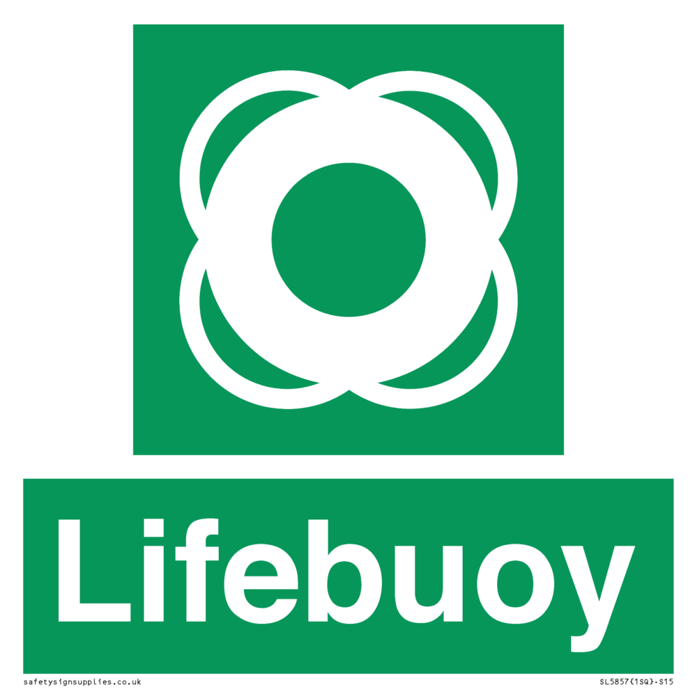 Sign Text: Lifebuoy Dimensions: 150x150mm Material: Plastic Rigid 3mm Orientation: Square Text Colour: White Background Colour: Green More...