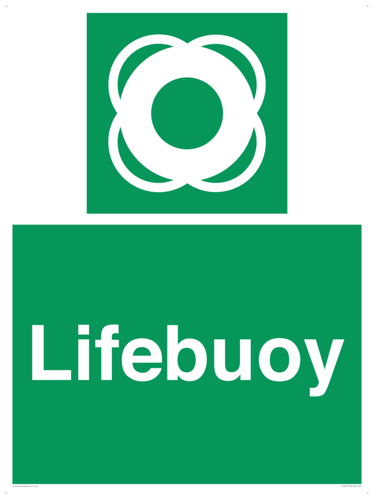 Sign Text: Lifebuoy Dimensions: 600x800mm Material: Plastic Rigid 3mm Orientation: Portrait Text Colour: White Background Colour: Green More...