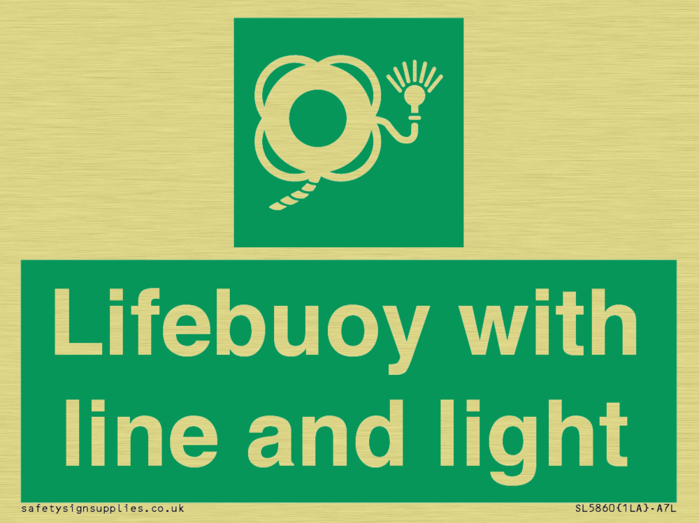 Sign Text: Lifebuoy with line and light Dimensions: 100x75mm Material: Champagne Aluminium Orientation: Landscape Text Colour: White Background Colour: Green More...
