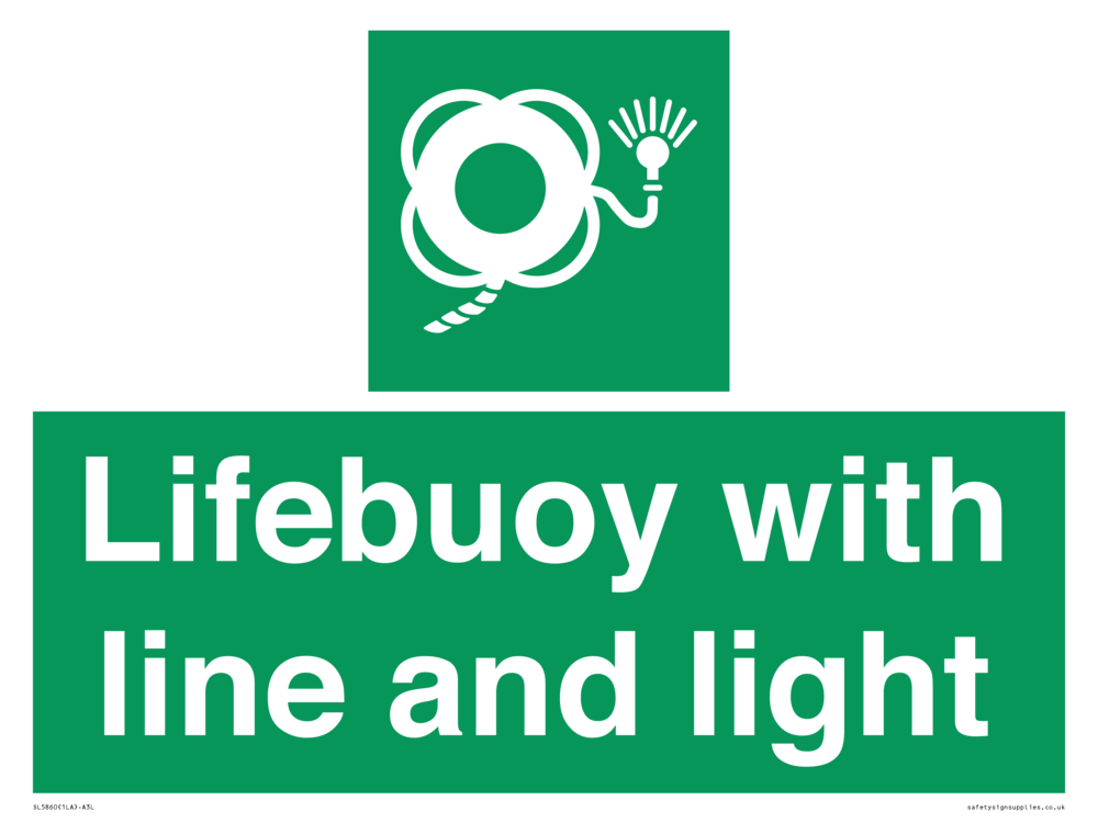 ISO 7010-E043 Safe condition: Lifebuoy with line and light