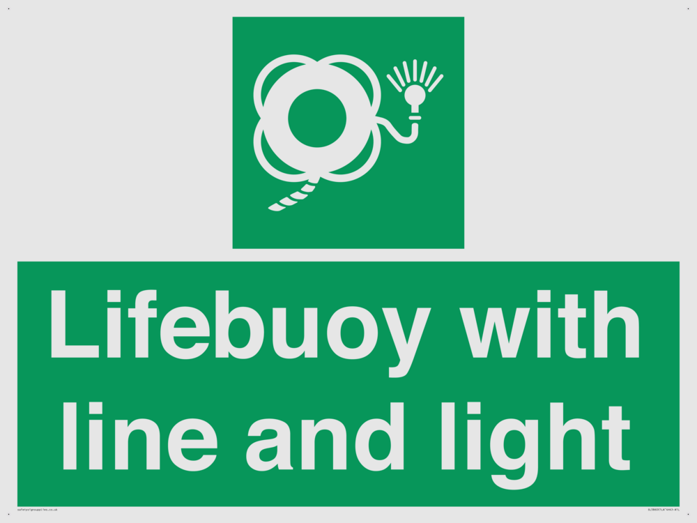 Sign Text: Lifebuoy with line and light Dimensions: 800x600mm Material: White Reflective Aluminium Composite 3mm Orientation: Landscape Text Colour: White Background Colour: Green More...