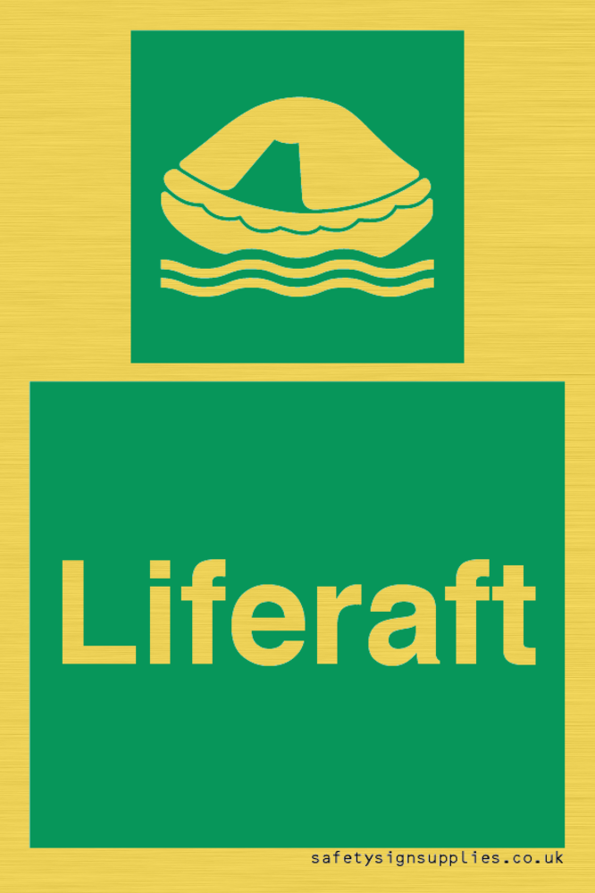 Sign Text: Liferaft Dimensions: 50x75mm Material: Plastic Semi-rigid Gold Orientation: Portrait Text Colour: White Background Colour: Green More...